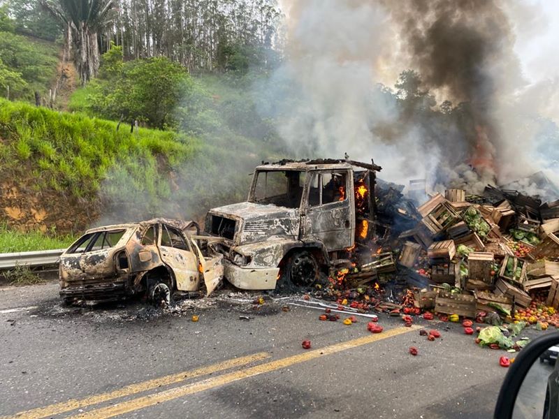 Uma pessoa morreu carbonizada e três ficaram feridas em uma batida envolvendo um caminhão e um carro, na manhã desta terça-feira (16), em um...